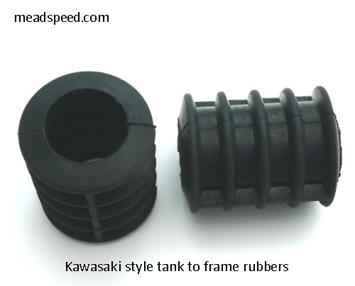 Kawasaki tank rubber which fits most frames, Kawasaki rubbers Pt.No.92075-084. Ideal for tank mounting and many other uses. Overall length 50mm with a bore of 25mm. Can easily be modified for smaller diameter tubes by trimming. Priced each